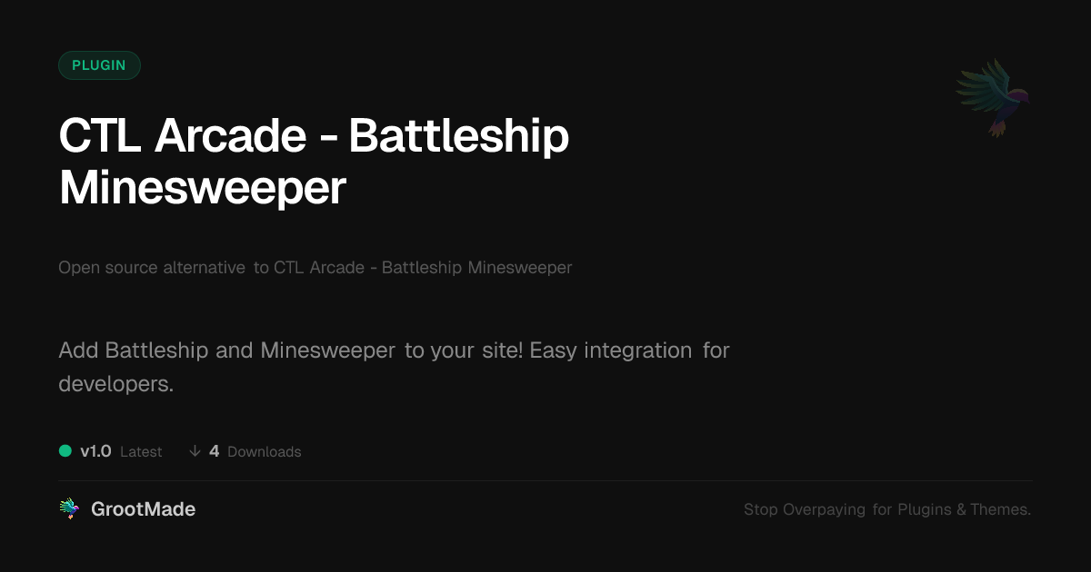 | Tags | arcade plugin, battleship cms, developer game integration, minesweeper website, WP game plugin, early access software, Gaming, Entertainment, Fun, Leisure, Multiplayer, Arcade, Games, Battleship, Minesweeper, Classic Games, digital identity control, profile tab builder |