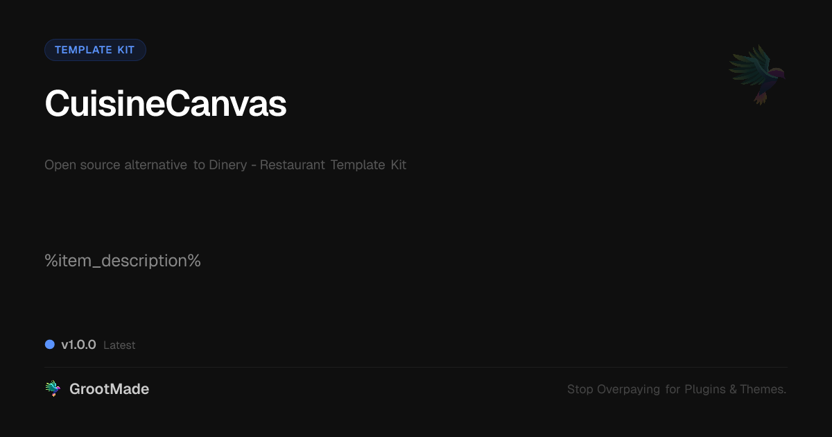GrootMade is not affiliated with Dinery - Restaurant Template Kit and provides an open-source alternative.