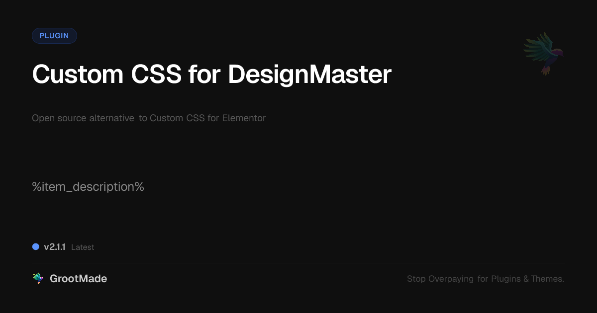 GrootMade is not affiliated with Custom CSS for Elementor and provides an open-source alternative.