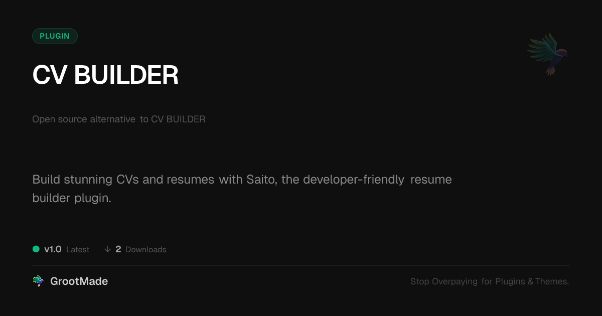 | Tags | open source tool, cv maker, developer resume, resume builder, cv generator, agency contract tool, cms customizer, theme addon slider, doctor website theme, Job Application, Employment, Job Search, Professional Profile, Cv Creator, Career Tools, Curriculum Vitae, Document Builder, portfolio plugin, online community safety, pagination addon |