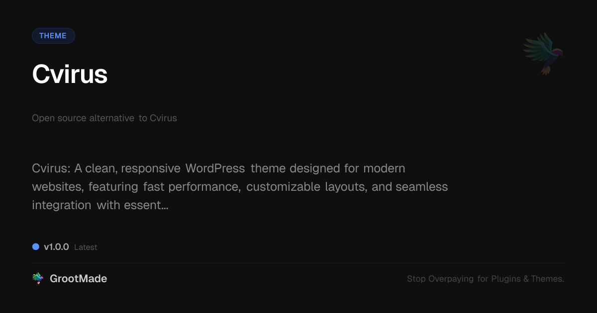 GrootMade is not affiliated with Cvirus and provides an open-source alternative.