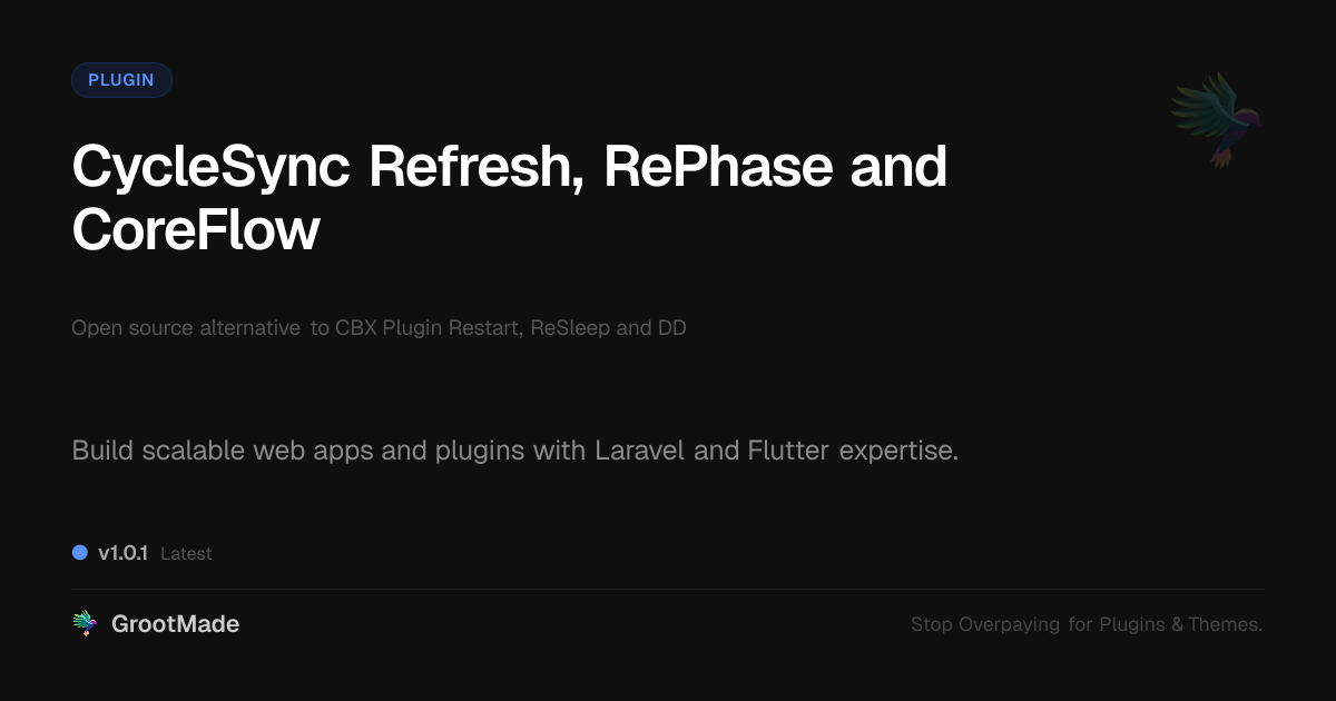 GrootMade is not affiliated with CBX Plugin Restart, ReSleep and DD and provides an open-source alternative.