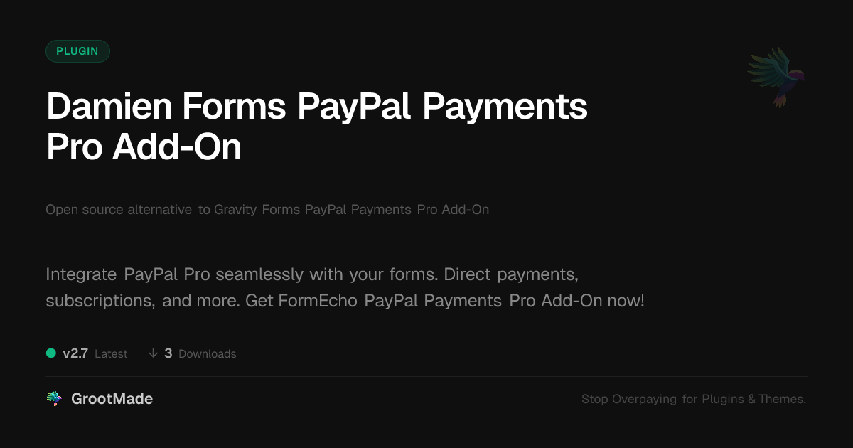 | Tags | subscription management, paypal integration, credit card processing, form payments, Payments, Paypal, Forms, Credit Card, Pro, Gravityforms, Transactions, Payment Gateway, data tracking software, Checkout, user contact form, clean shop design, user role visibility, profile tab builder, Ecommerce |