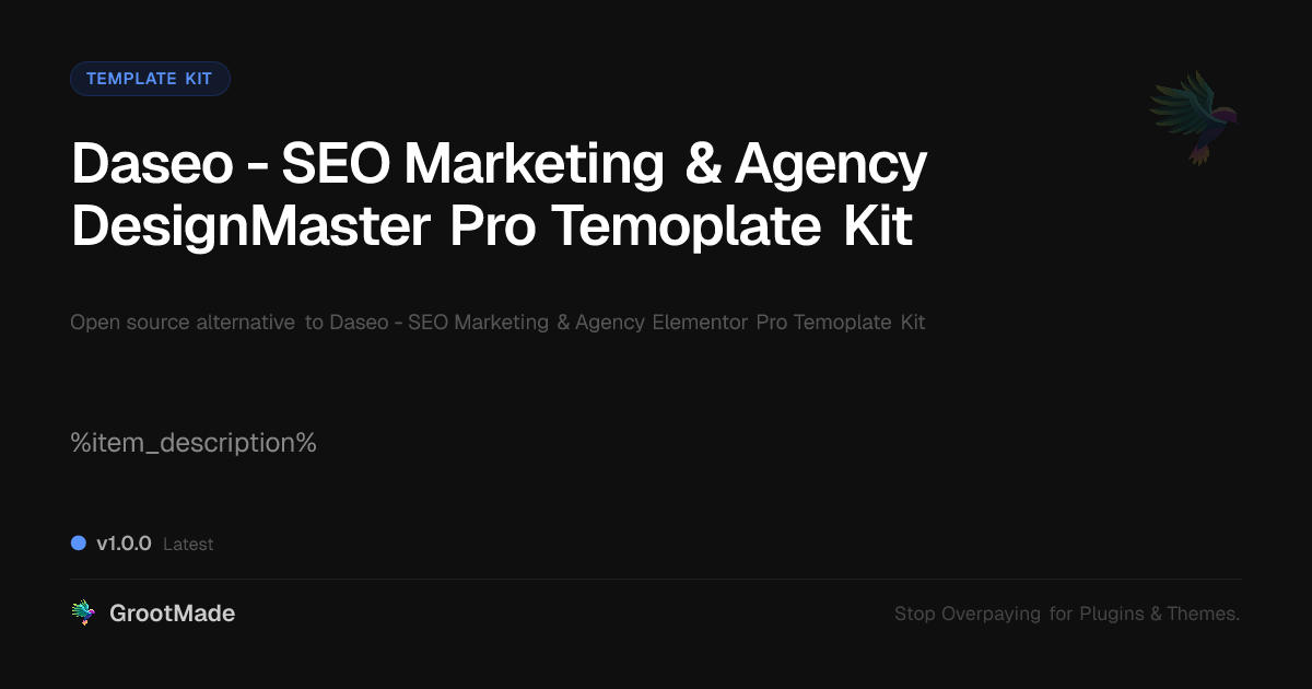GrootMade is not affiliated with Daseo - SEO Marketing & Agency Elementor Pro Temoplate Kit and provides an open-source alternative.