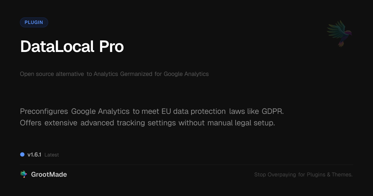GrootMade is not affiliated with Analytics Germanized for Google Analytics and provides an open-source alternative.