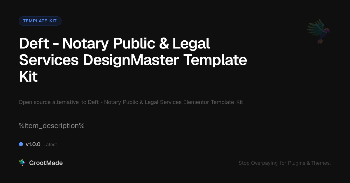 GrootMade is not affiliated with Deft - Notary Public & Legal Services Elementor Template Kit and provides an open-source alternative.