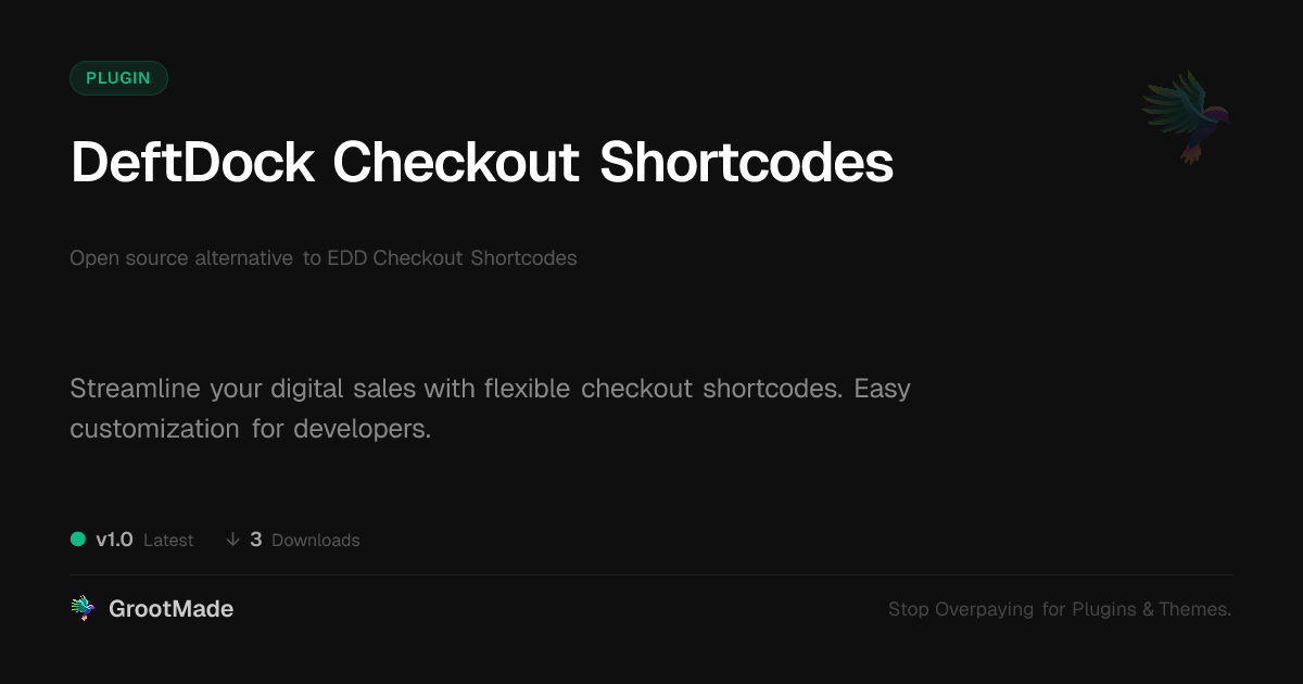 | Tags | digital products, data tracking software, Downloads, ecommerce customization, WC, checkout shortcodes, Payments, frontend checkout, ecommerce, digital delivery, Digital Downloads, order processing, member profile enhancements, GA4 server-side tracking, digital product sales, Shortcodes, file delivery, Checkout |