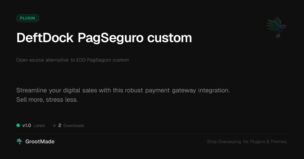 | Tags | Product Delivery, secure transactions, order management, payment gateway integration, WC, online store solution, open source payments, transaction data tool, Ecommerce, digital delivery, Digital Downloads, Payment Gateway, Pagseguro, member profile enhancements, digital product sales, Custom Integration, file delivery, image gallery pagination |
