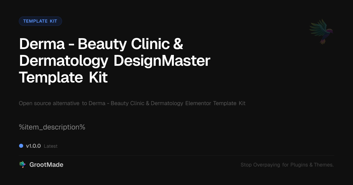 GrootMade is not affiliated with Derma - Beauty Clinic & Dermatology Elementor Template Kit and provides an open-source alternative.