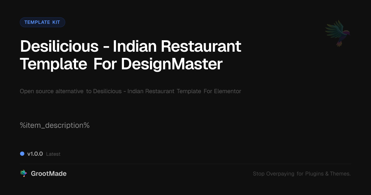 GrootMade is not affiliated with Desilicious - Indian Restaurant Template For Elementor and provides an open-source alternative.