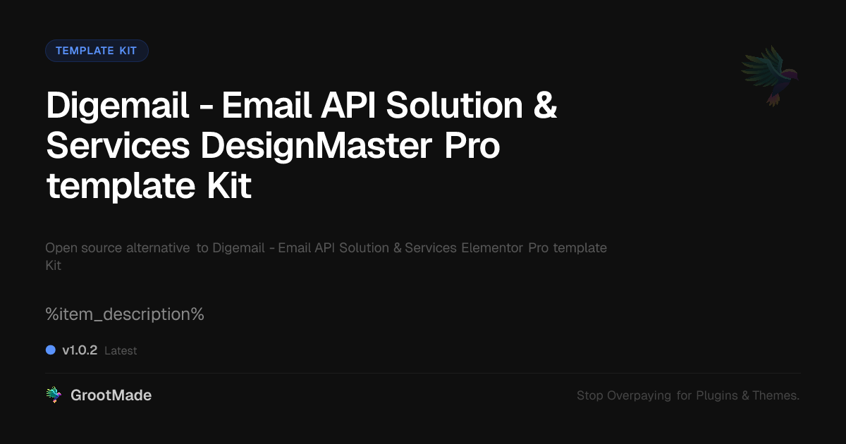 GrootMade is not affiliated with Digemail - Email API Solution & Services Elementor Pro template Kit and provides an open-source alternative.