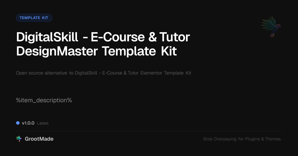 GrootMade is not affiliated with DigitalSkill - E-Course & Tutor Elementor Template Kit and provides an open-source alternative.