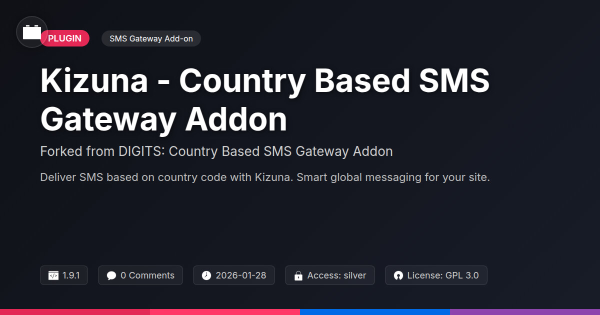 | Tags | mobile, developer sms tool, sms gateway addon, country sms gateway, global sms routing, international sms, full screen theme, Communication, Gateway, Messaging, Sms, Country Based, WC, profile tab builder, integration, Ecommerce, image migration plugin, Notifications, user role visibility, user contact form |