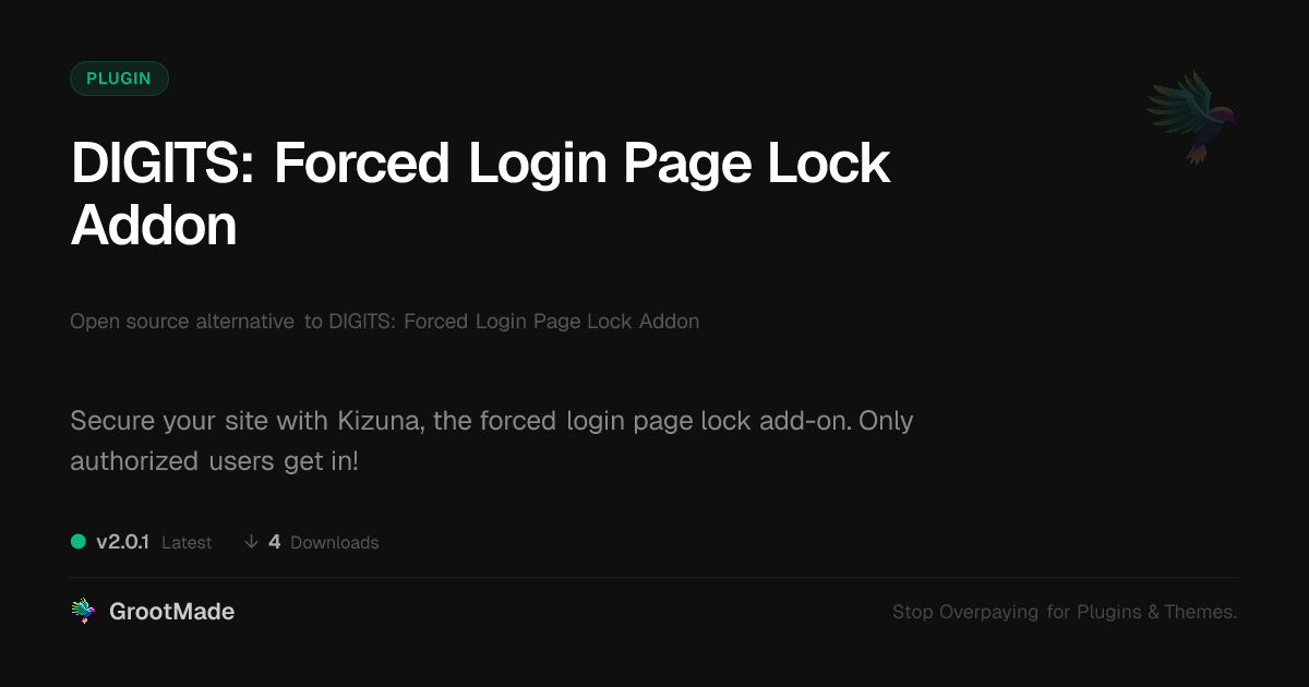 | Tags | Membership, site security, website access control, private content, forced login, login page lock, deal finder plugin, Security, Login, Restricted Access, Protection, Page Lock, authentication, user management, Digital Downloads, profile tab builder, user role visibility, user contact form |