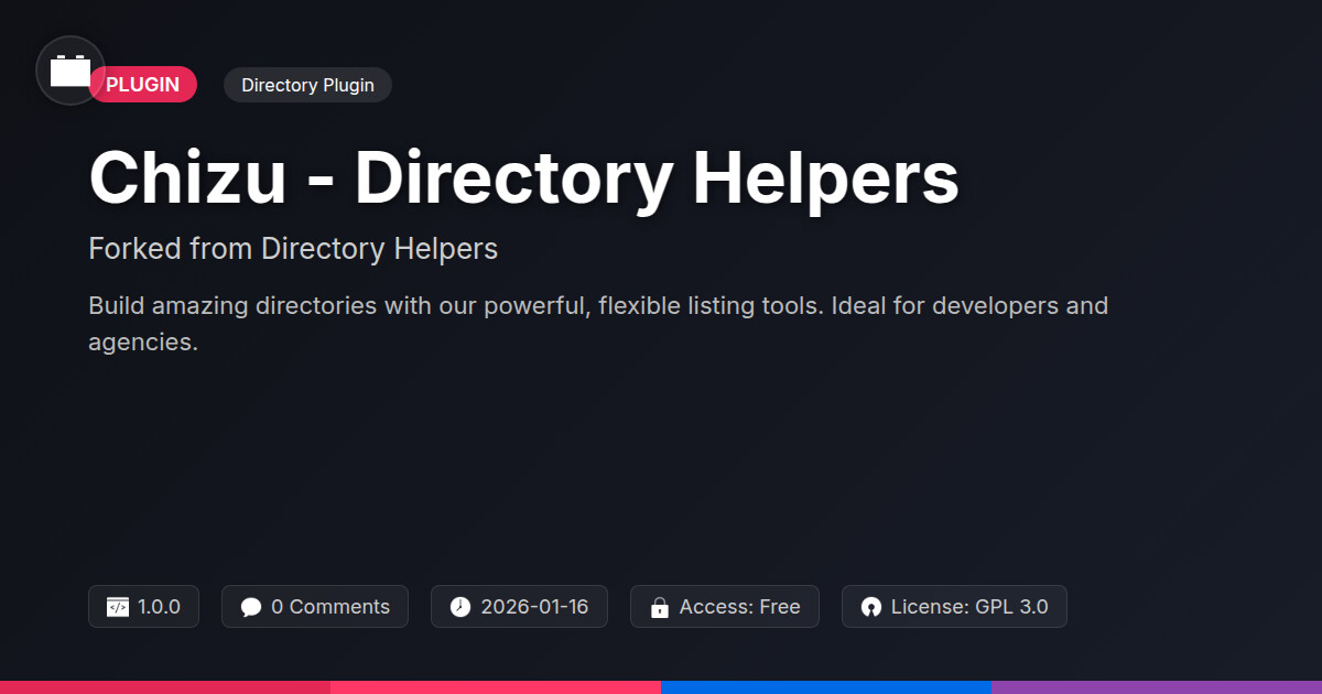 | Tags | Business Directory, Listing Software, directory comparison, Listings Plugin, business, gallery featured content, user role visibility, listing, Directory Creator, Custom Directory, directory plugin, profile tab builder, member communication plugin, digital identity control, directory builder, Directory Tools, open-source directory, Directory Helpers, directory, directory manager |
