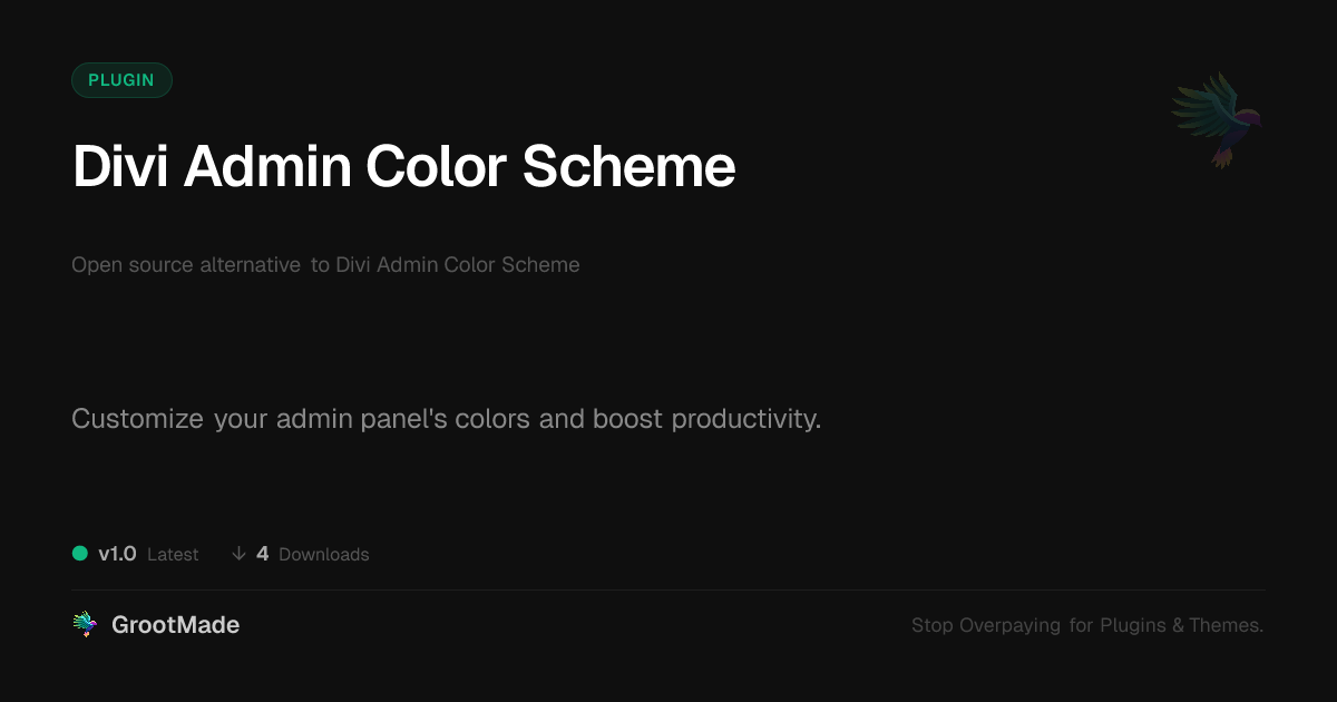 | Tags | developer productivity, website development tools, customization, backend customization, admin color scheme, css styling, wp admin, theming, translation plugin add-on, Dashboard, Admin, Visual, Divi, Styling, Color Scheme, user interface |