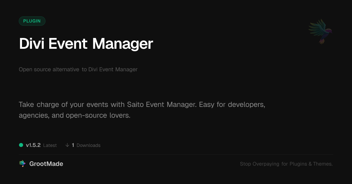 | Tags | event registration plugin, event manager plugin, event planner, divi event plugin, website event plugin, pdf display, content spotlight plugin, developer tools plugin, Scheduling, Calendar, Organizers, Appointments, Workshops, Booking, multilingual website plugin, data visualization tools, Events, event management, event registration, profile tab builder, user contact form, WP event |