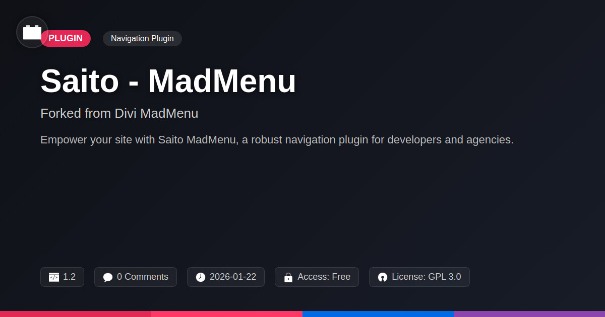 | Tags | site navigation, responsive menu, menu builder, custom menu, navigation plugin, mega menu, website menu, domain blocker, Navigation, Divi, Dropdown Menu, Header Menu, Divi Builder, website customization, user experience, Digital Downloads, member communication plugin, user role visibility, user contact form |