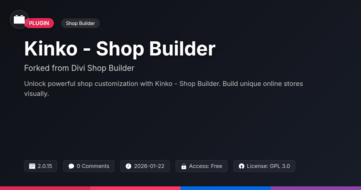 | Tags | open source ecommerce, online store builder, e-commerce customization, product grid, customizer, platform shop tools, visual shop designer, design tools, shop builder, ecommerce email integration, e-commerce site search, Storefront, Product Pages, Divi, data tracking software, Checkout, product metadata indexing, member profile enhancements, WC, Ecommerce, user role visibility, user contact form |