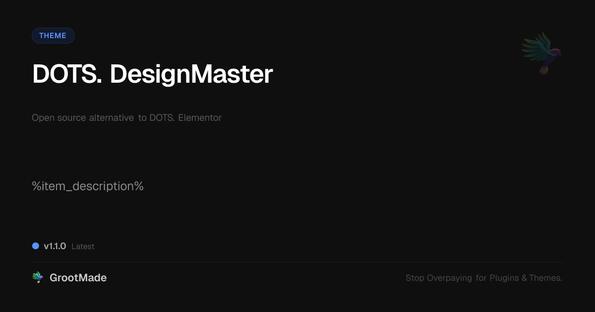 GrootMade is not affiliated with DOTS. Elementor and provides an open-source alternative.