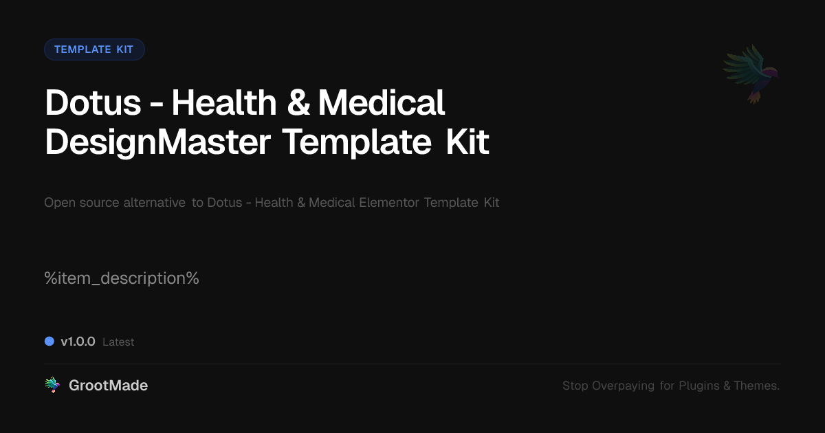 GrootMade is not affiliated with Dotus - Health & Medical Elementor Template Kit and provides an open-source alternative.