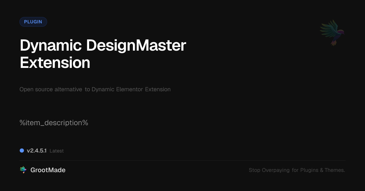 GrootMade is not affiliated with Dynamic Elementor Extension and provides an open-source alternative.