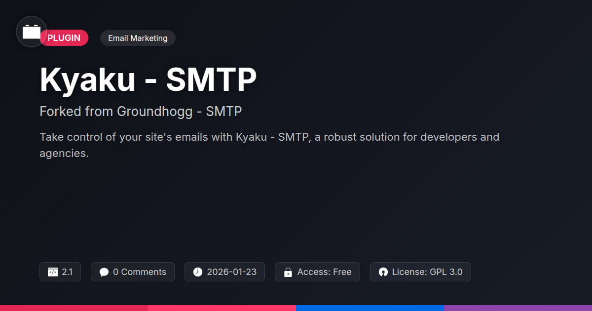 | Tags | transactional emails, email automation, Email Delivery, SMTP Plugin, email marketing, Developer Email, Open Source SMTP, Transactional Email, payment status, Groundhogg, Email, Smtp, Wp Mail, email campaigns, marketing automation, profile tab builder, member communication plugin, user role visibility |