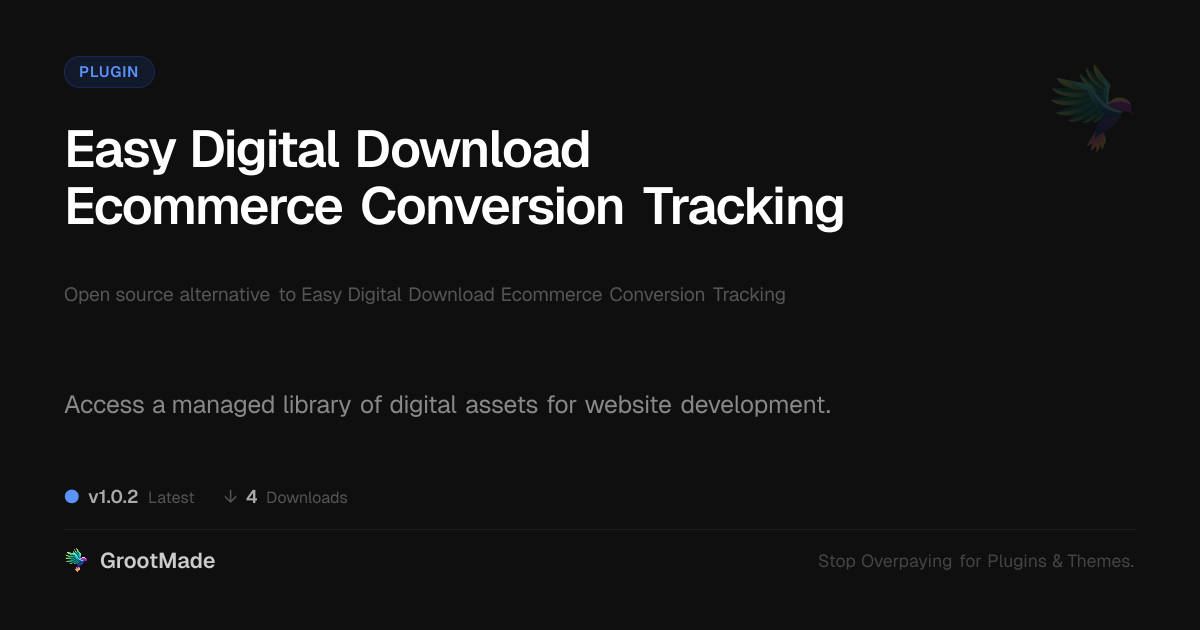 GrootMade is not affiliated with Easy Digital Download Ecommerce Conversion Tracking and provides an open-source alternative.