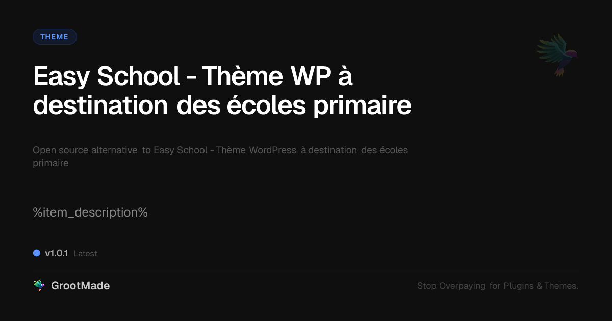 GrootMade is not affiliated with Easy School - Thème WP à destination des écoles primaire and provides an open-source alternative.