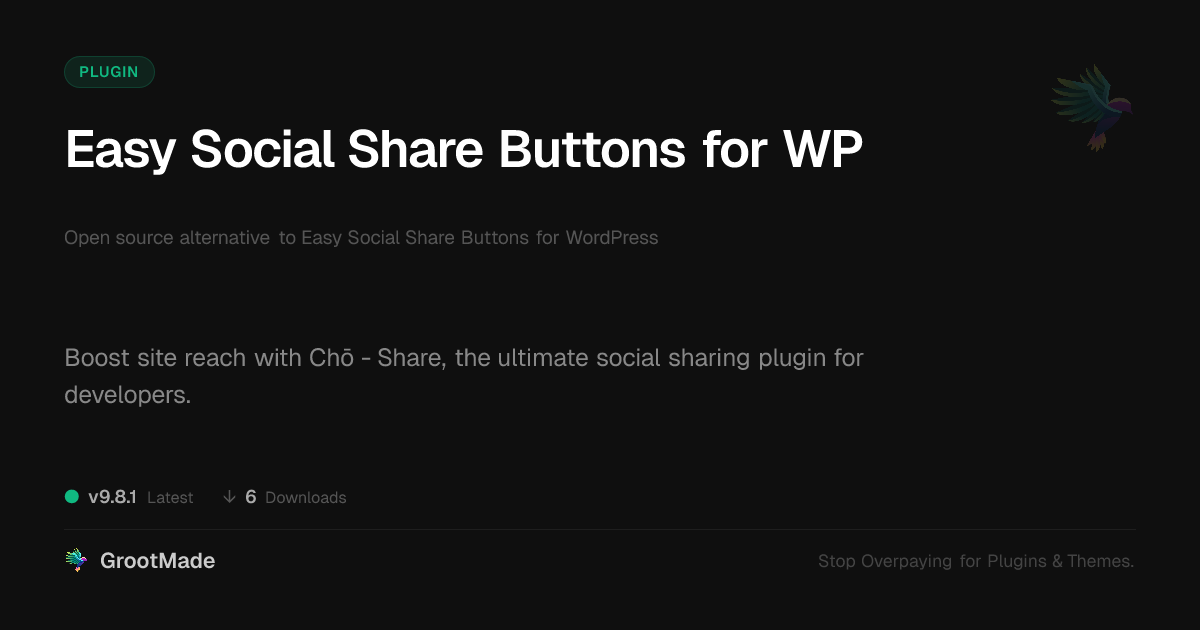 GrootMade is not affiliated with Easy Social Share Buttons for WP and provides an open-source alternative.