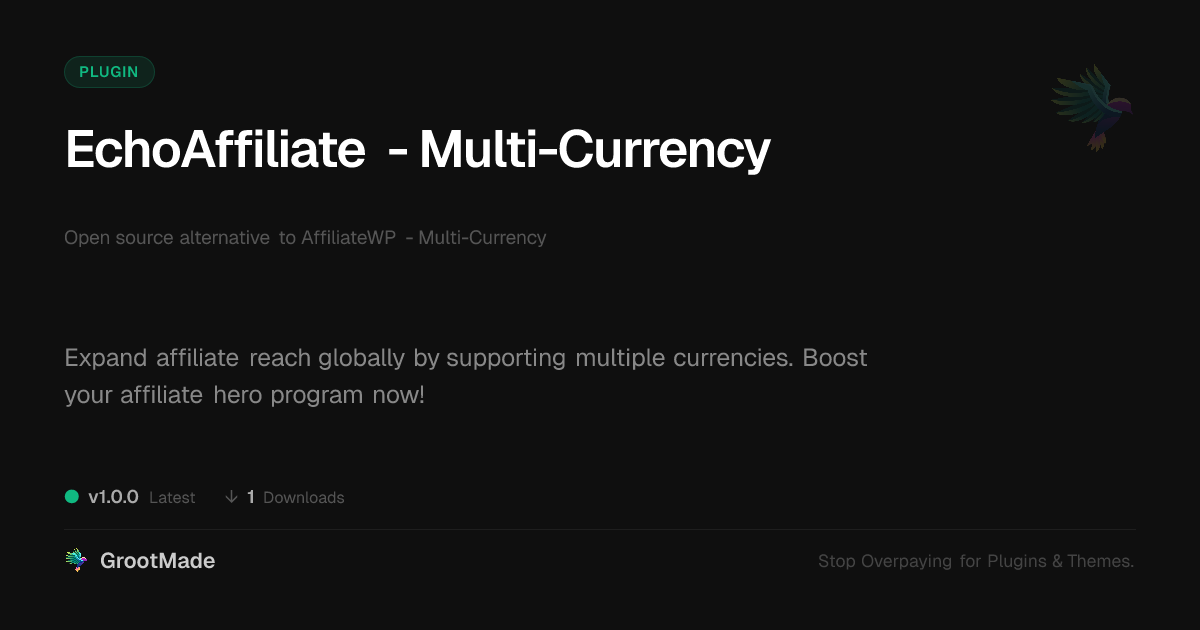 | Tags | Affiliate, affiliate payout currency, discussion board performance, Conversion, WC, Localization, Payments, user role visibility, search enhancement tool, Pricing, Currency, Ecommerce, multi-currency, developer affiliate tool, member profile enhancements, multi-currency affiliate, site membership forms, Exchange, online community safety, community forum acceleration, affiliate program currency, global affiliate marketing, site plugin |