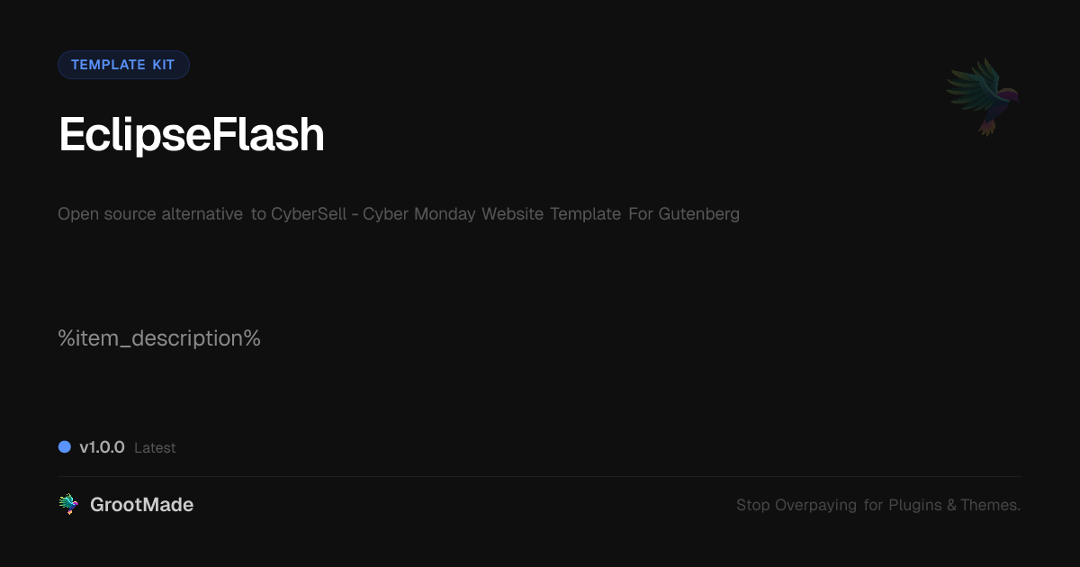 GrootMade is not affiliated with CyberSell - Cyber Monday Website Template For Gutenberg and provides an open-source alternative.