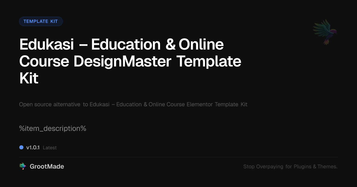 GrootMade is not affiliated with Edukasi – Education & Online Course Elementor Template Kit and provides an open-source alternative.