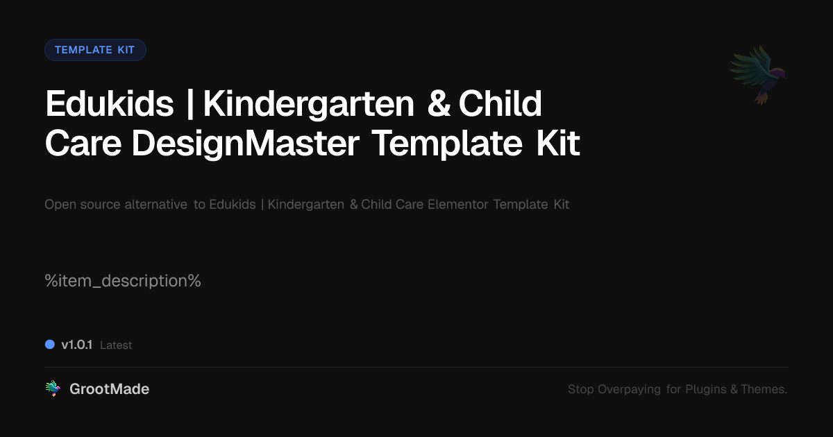 GrootMade is not affiliated with Edukids | Kindergarten & Child Care Elementor Template Kit and provides an open-source alternative.