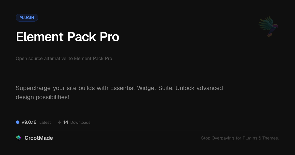 GrootMade is not affiliated with Element Pack Pro and provides an open-source alternative.