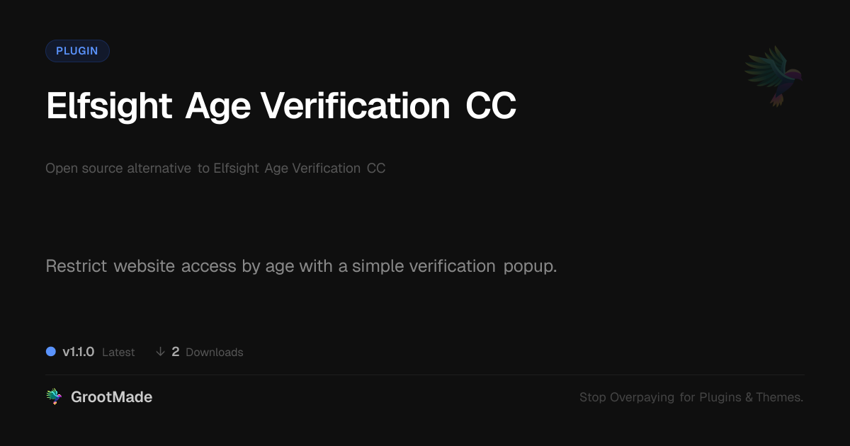 GrootMade is not affiliated with Elfsight Age Verification CC and provides an open-source alternative.