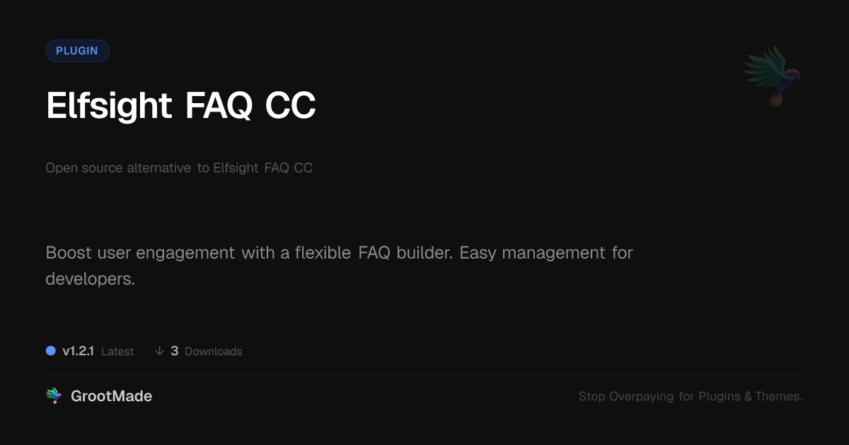 GrootMade is not affiliated with Elfsight FAQ CC and provides an open-source alternative.