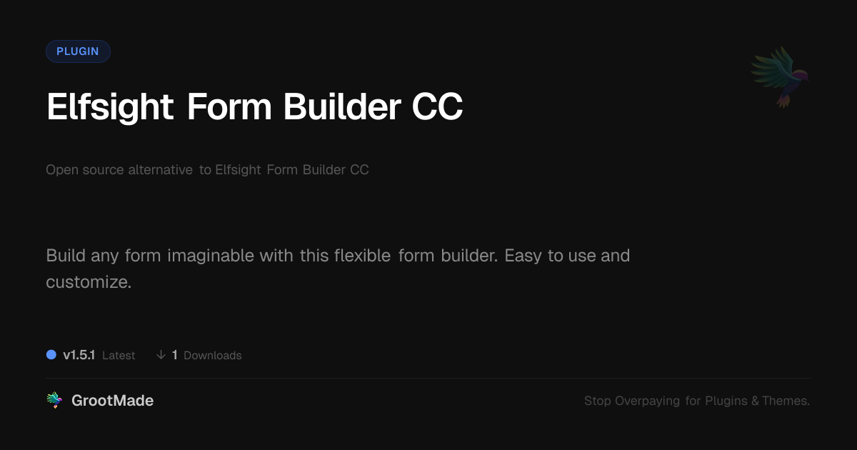 GrootMade is not affiliated with Elfsight Form Builder CC and provides an open-source alternative.