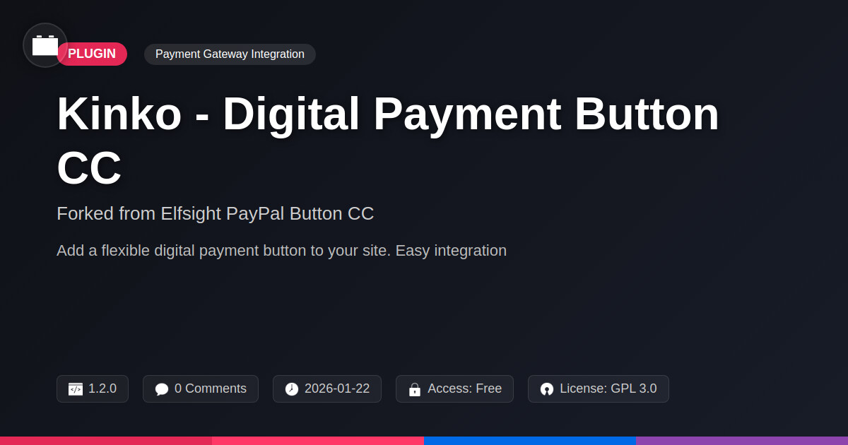 | Tags | online store, payment integration, digital payments, digital payment button, checkout button, merchant account, Paypal, Stripe, Credit Card, Payment, digital identity control, Payment Gateway, data tracking software, Checkout, product metadata indexing, member profile enhancements, WC, profile tab builder, Ecommerce, user role visibility, user contact form |
