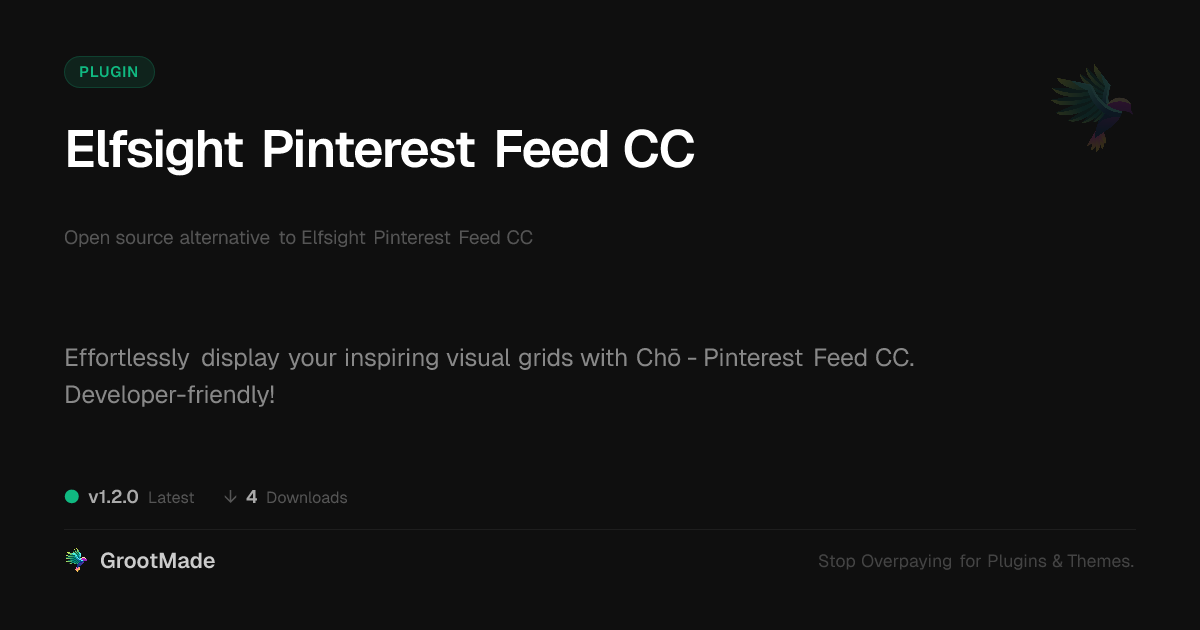 | Tags | social media integration, visual content display, image gallery, customization, content curation, frontend development, pinterest feed plugin, WP community tools, web project mover, custom payment integration, site creator, Feed, Social Media, digital identity control, Digital Downloads, visual content, recent profile visitors, Pinterest, Blogging, Widgets, marketing, member communication plugin |