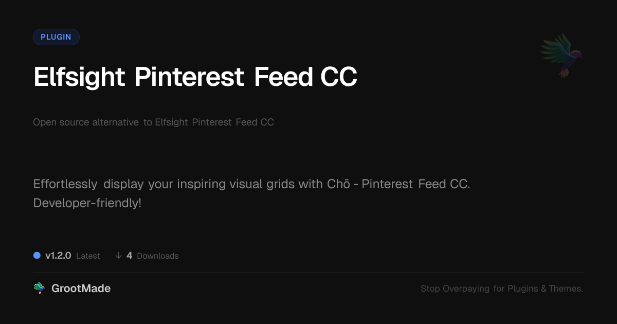 GrootMade is not affiliated with Elfsight Pinterest Feed CC and provides an open-source alternative.