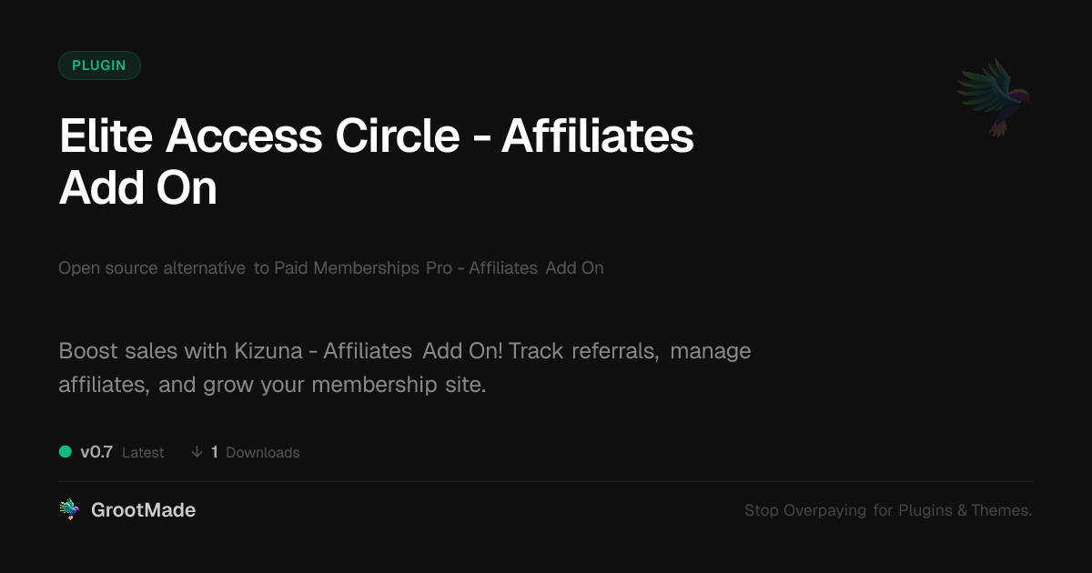 | Tags | Membership, affiliate marketing, referral tracking, affiliate management, membership site affiliate, open source affiliate, payment status, digital shop template, Subscription, Paid Memberships Pro, Referrals, Affiliates, Recurring Payments, Commissions, monetization, affiliate marketing plugin, user management, profile tab builder, design expansion pack, user role visibility |