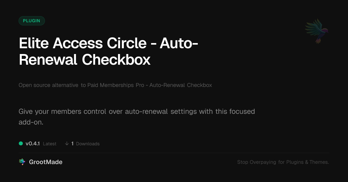 | Tags | Subscriptions, premium content, memberships, checkout customization, user registration, member control, custom post type, membership auto-renewal, subscription settings, responsive e-commerce, Payments, Membership Plugin, Recurring, Pmpro, Auto Renewal, data tracking software, Checkout, profile tab builder, user role visibility |