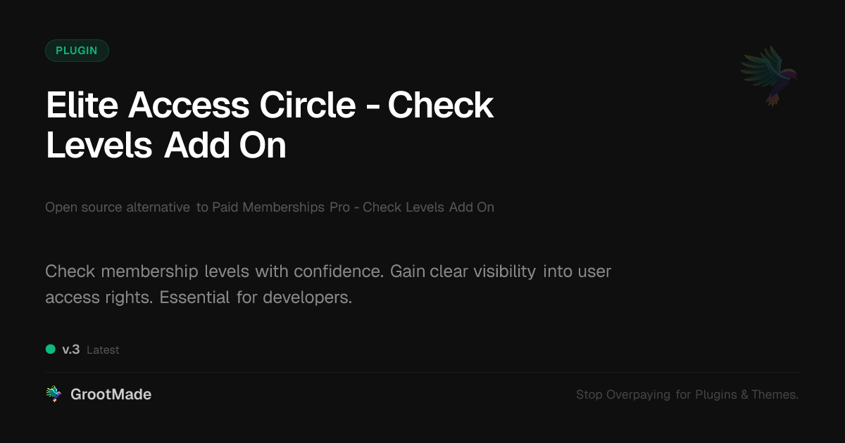 | Tags | Membership, access control, premium content, user access control, user roles, membership level checker, paid content verification, subscription management insight, Membership Plugin, User Levels, digital identity control, content restriction, user management, member profile enhancements, profile tab builder, design expansion pack, permissions, Subscription, user role visibility, user contact form |