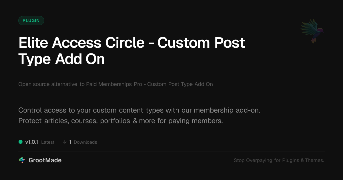 | Tags | Membership, premium content, custom post types, user access, membership levels, custom post type restrictions, member-only posts, membership content control, paid content access, digital shop template, responsive e-commerce, Subscription, Paid Memberships Pro, Pmpro, Post Type Permissions, content restriction, profile tab builder, design expansion pack, user role visibility, user contact form, exclusive content plugin |
