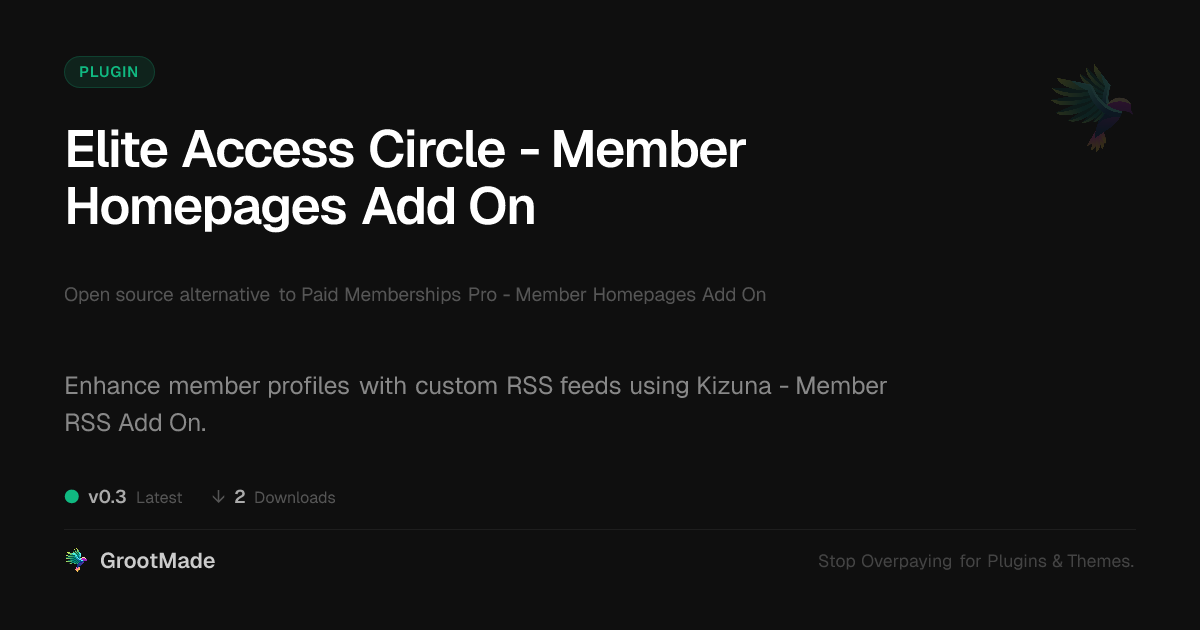 | Tags | Membership, premium content, user profiles, custom member pages, member rss feed, membership content, member content, digital shop template, responsive e-commerce, Paid Memberships Pro, Member Directories, Members, Pmpro, User Homepages, restricted content, open source plugin, Digital Downloads, profile tab builder, user role visibility |