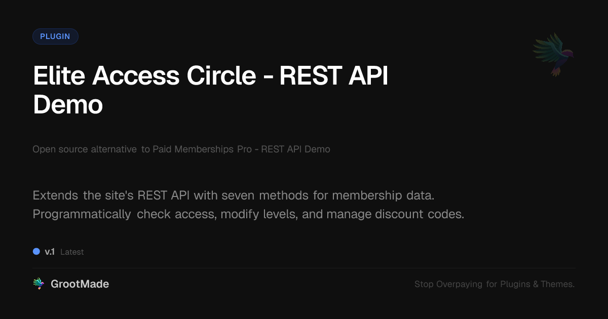 GrootMade is not affiliated with Paid Memberships Pro - REST API Demo and provides an open-source alternative.