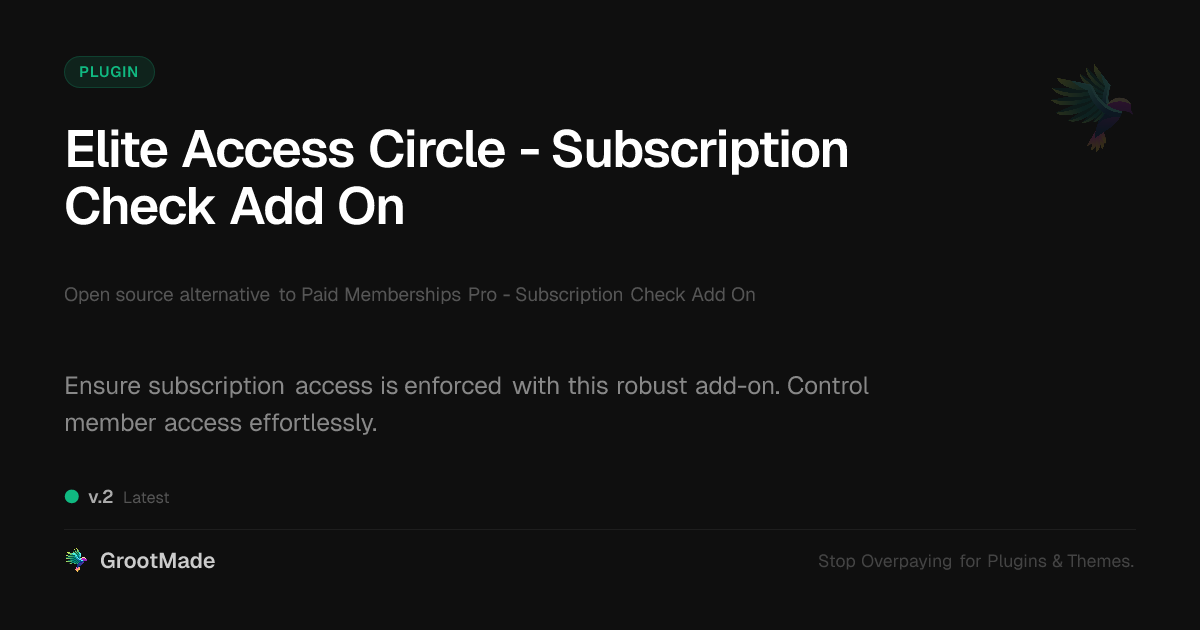 | Forked from | Paid Memberships Pro - Subscription Check Add On |