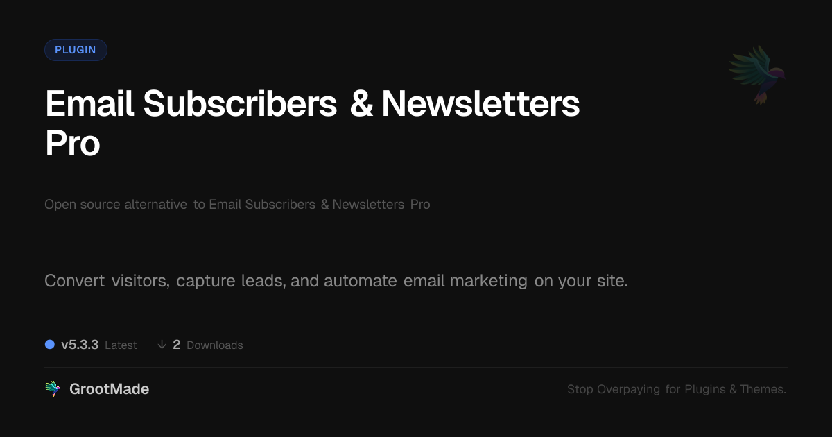 GrootMade is not affiliated with Email Subscribers & Newsletters Pro and provides an open-source alternative.