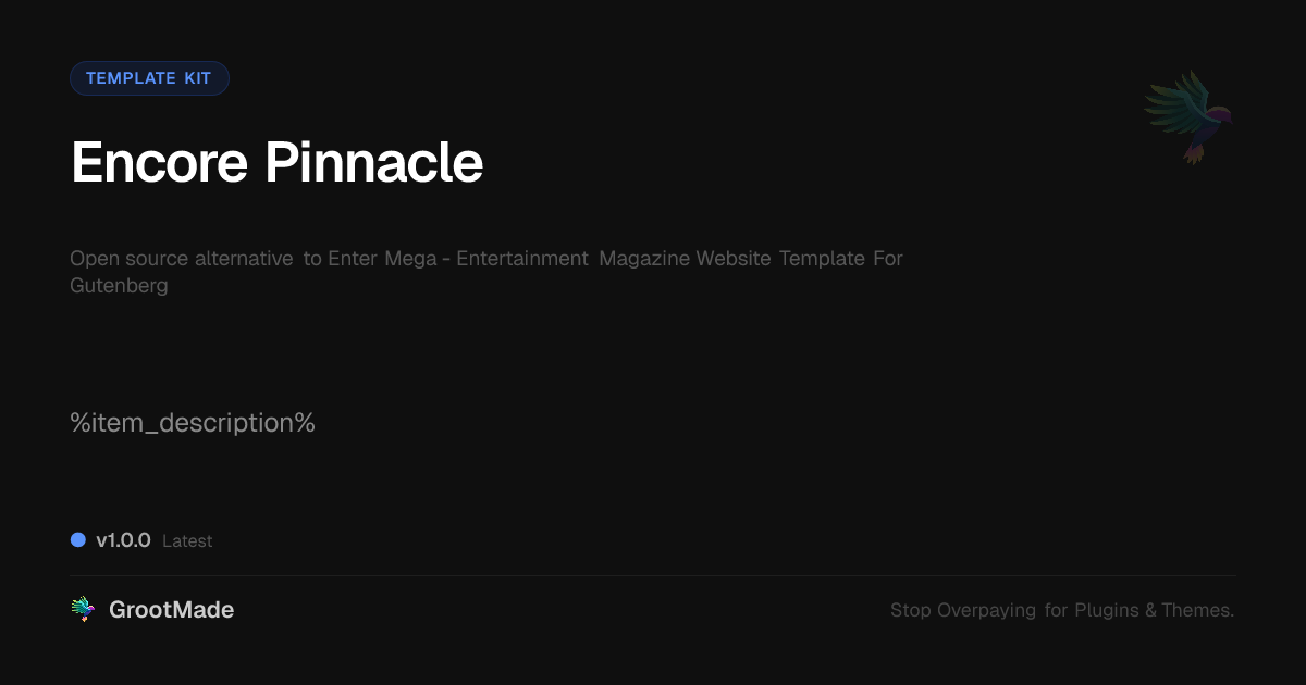 GrootMade is not affiliated with Enter Mega - Entertainment Magazine Website Template For Gutenberg and provides an open-source alternative.